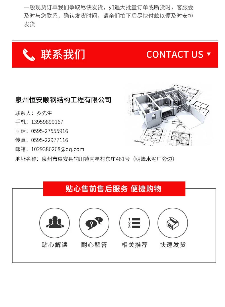 商铺名称:泉州恒安顺钢结构工程有限公司销售部