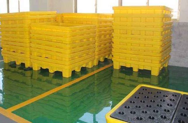 盛漏托盘,防泄漏托盘,油桶托盘作用:聚乙烯为典型的热塑性塑料,是无臭、无味、无毒的可燃性白色粉末。成型加工的PE树脂均是经挤出造粒的蜡状颗粒料,外观呈乳白色。