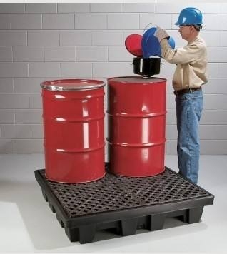 詹尔斯zenersiy提供的盛漏托盘专业用于化学品原料桶的防漏存储,新型加高设计,储存的泄漏量更大,尤其适用于腐蚀性化学品的原料仓库、化学品临时仓库进行化学品储存分装使用。