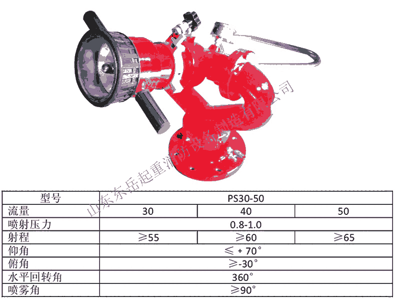 东岳消防炮设备特点:消防水炮由底座、进水管、回转体、集水管、射流调节环、手把和锁紧机构等组成炮身可作水平回转和仰俯回转,并可实现定位。消防炮使用压力范围广,射程远并可实施直流至90°开花、水雾射流的无极调节。其重量轻、体积小、功能全、灭火效果好。