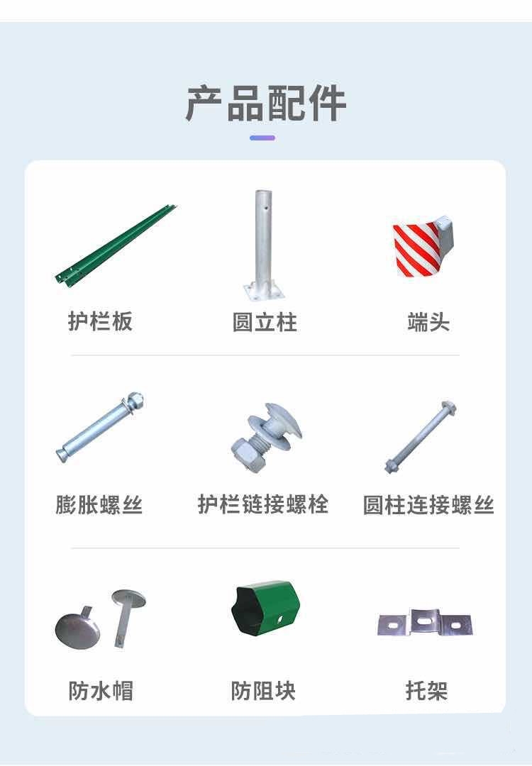 波形梁护栏是半刚性护栏中的一种常用形式,它具有一定的刚度和韧性,主要通过横梁、立柱和土基的变形吸收碰撞能量,损坏部件容易更换,且具有一定的视线诱导作用。波形梁护栏由波形护栏板、立柱、托架、防阻块、端头、紧固件和基础等组成。其中护栏板、立柱、防阻块的材料是普通碳素结构钢,拼接螺栓的材料为45号钢、20TiB钢,螺母为35号钢,垫圈为扁钢和带钢,连接螺栓为普通碳素钢。护栏的各部分构件均需进行防腐处理。波形梁护栏产品的检测项目为外观质量、几何形状及尺寸、钢板原材料性能和镀层质量四个部分,其抽样方法需根据抽样标准进行,检验方法以GB700JT/T 281为依据。其安装后的质量检测主要以平线形、各种几何尺寸及强度性能等内容为主。