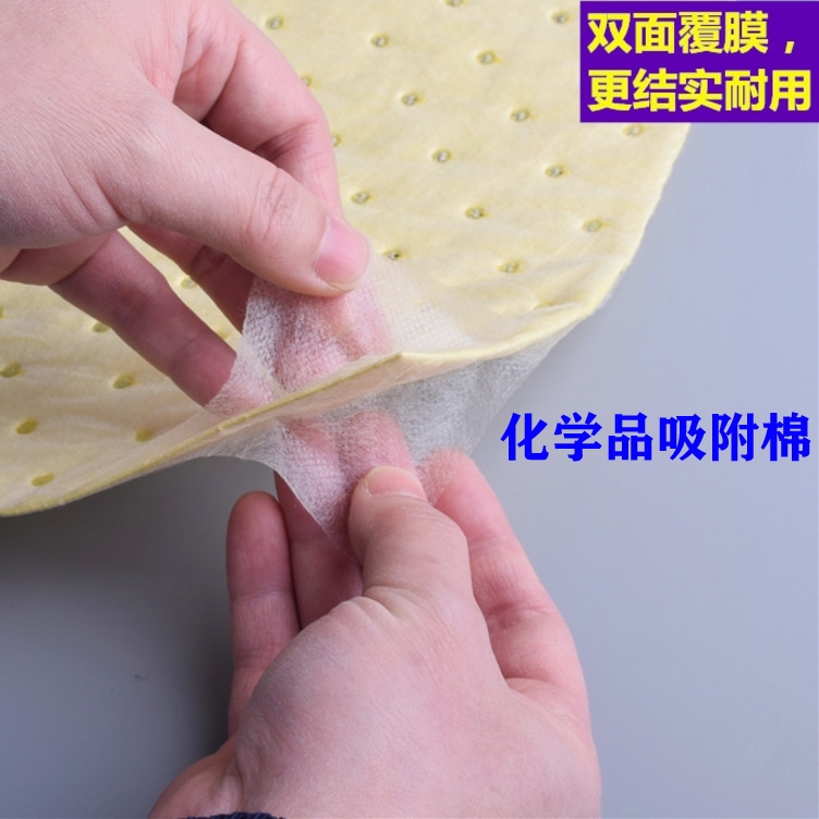 化学吸液棉片(40cm*50cm): 即吸油也吸水,颜色亮黄色,比较醒目,可以吸附酸碱、化学品等。适用于实验室、化工厂等。