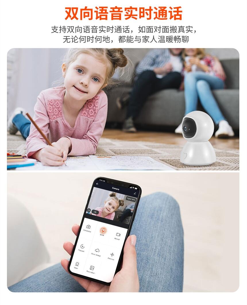 家用涂鸦智能摄像头1080P高清像素双向语音对讲夜视红外摄像头
