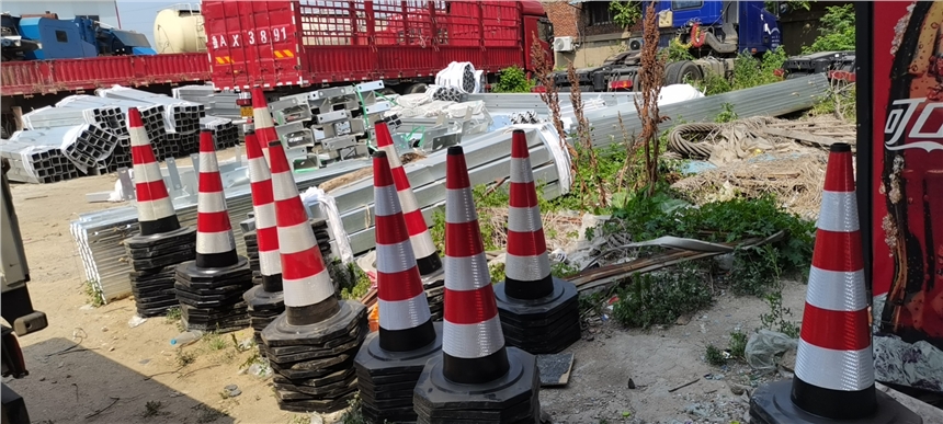 厂家,批发,特价材料:朔料、橡胶、PVC规格:500mm、600mm、700mm、750mm颜色:红白、黄黑特点:良好的柔韧性、抗汽车滚压、硬物撞击不会损坏,耐老化、耐压、耐摔、轻便又耐用。防日晒、不怕风吹雨打、耐热、耐寒、不龟裂、不变色等优点。白红相间颜色醒目,高强级反光膜晚上能反射出耀眼的光芒使驾驶者一目了然。塑料采用塑料高温硫化整体模压而成,集塑料的韧性于一身,具有耐老化、耐压、耐摔、轻便耐用。再配以高反光材料,反光效果好,适用城市路口车道,人行道,建筑物之间的隔离警示。选用优质PE材料,橡胶材料,反光膜。特性:底部可以填充沙和水泥,并通过柜架牢固连接锥身,重量重,坚实稳定性好。顶部圆帽型设计,方便提携,并容易与其他装备连接使用。反光膜宽度宽,明亮醒目,警示效果好,晚上能反射出耀眼的光芒使驾驶者一目了然。