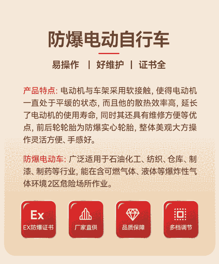 多档位可调节式防爆电动自行车