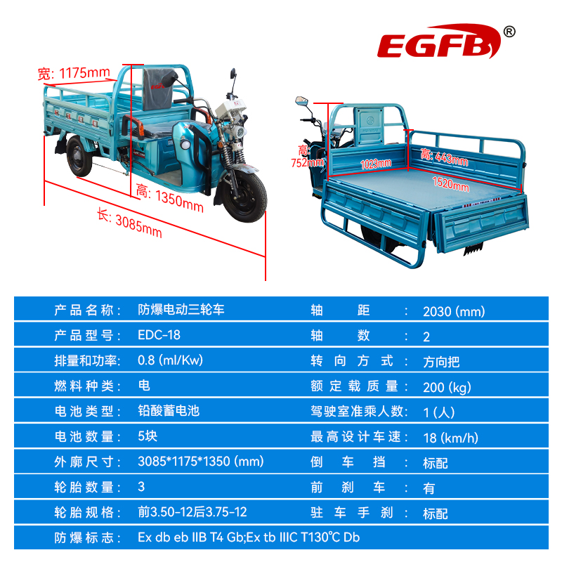 防爆电动三轮车适用于需要在爆炸性环境中进行运输和作业的场所,其中包括但不限于: