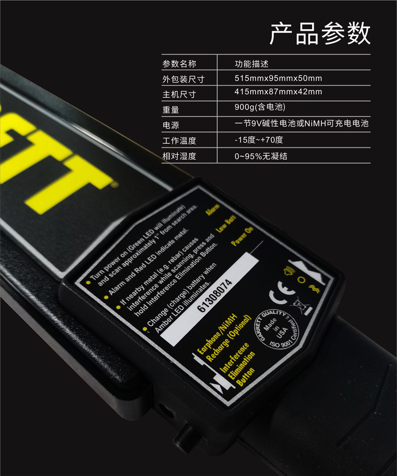 GARRETT SuperWand手持金属探测器黄金检测仪声音震动报警模式