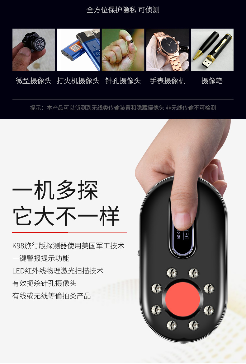 gps信号探测器摄像头红外线智能检测仪防监控反偷拍酒店防窥K98