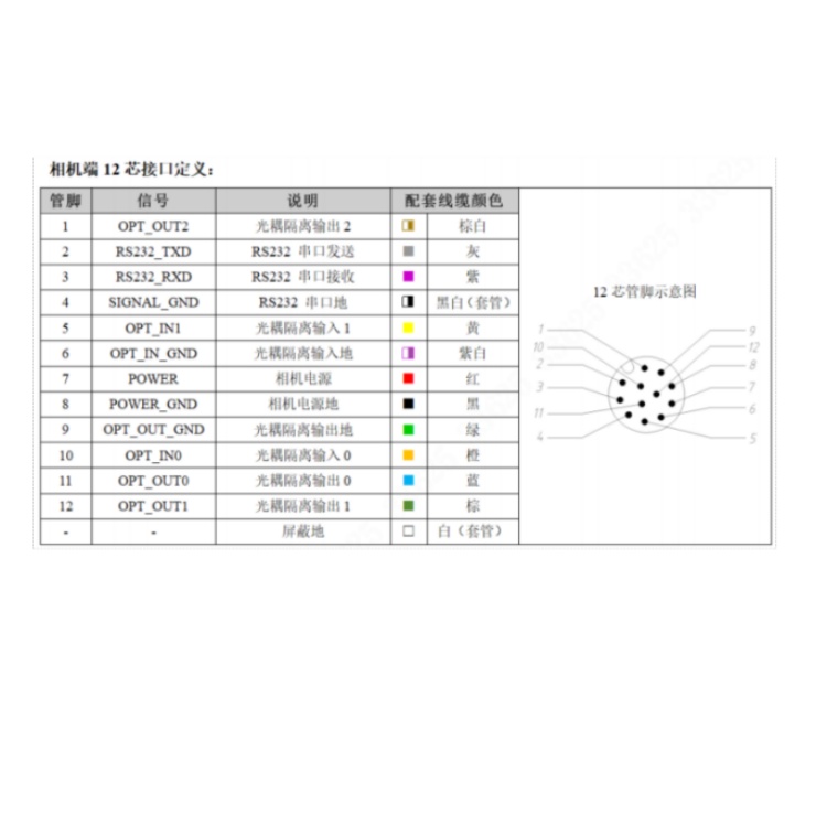SS4013MG-12M-RGG01 华睿科技SS4000系列130万像素12mm镜头全局快门60fps内置丰富算法工具百兆以太网接口黑白红光智能相机 接口定义: