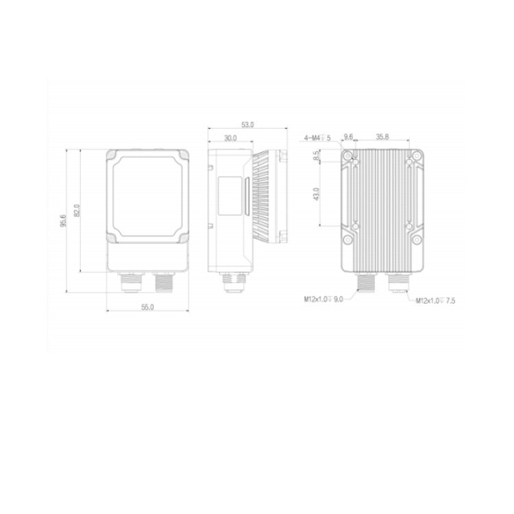 SS5050MG-12M-WGG01 华睿科技SS5000系列424万像素12mm镜头全局快门45fps千兆工业以太网接口内置丰富算法工具白光黑白智能相机 结构尺寸图(mm):