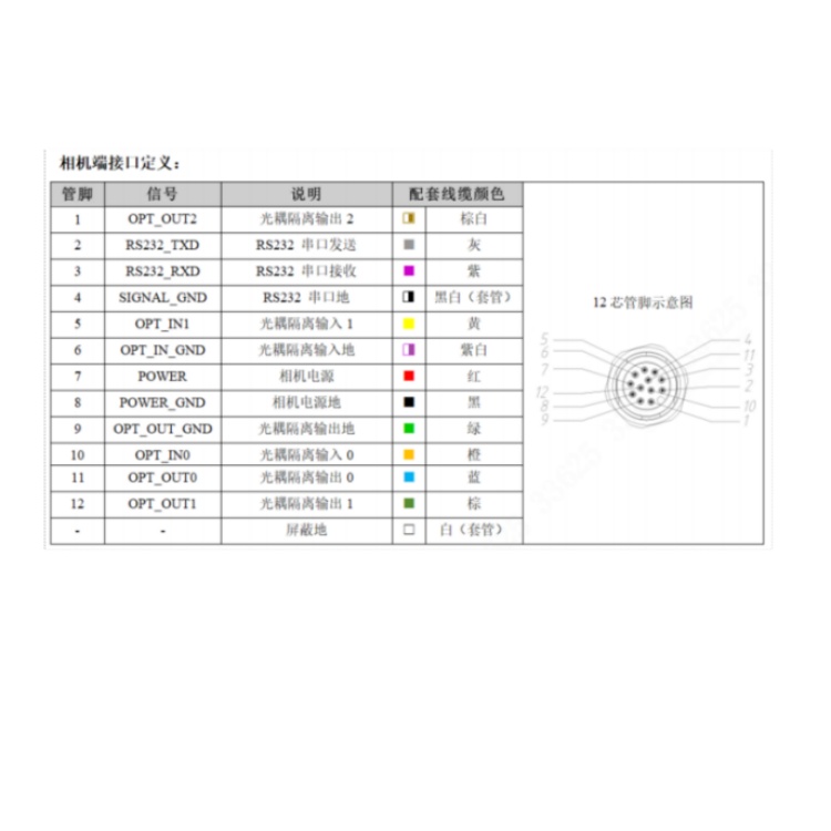 SS5050MG-12M-WGG01 华睿科技SS5000系列424万像素12mm镜头全局快门45fps千兆工业以太网接口内置丰富算法工具白光黑白智能相机 接口定义: