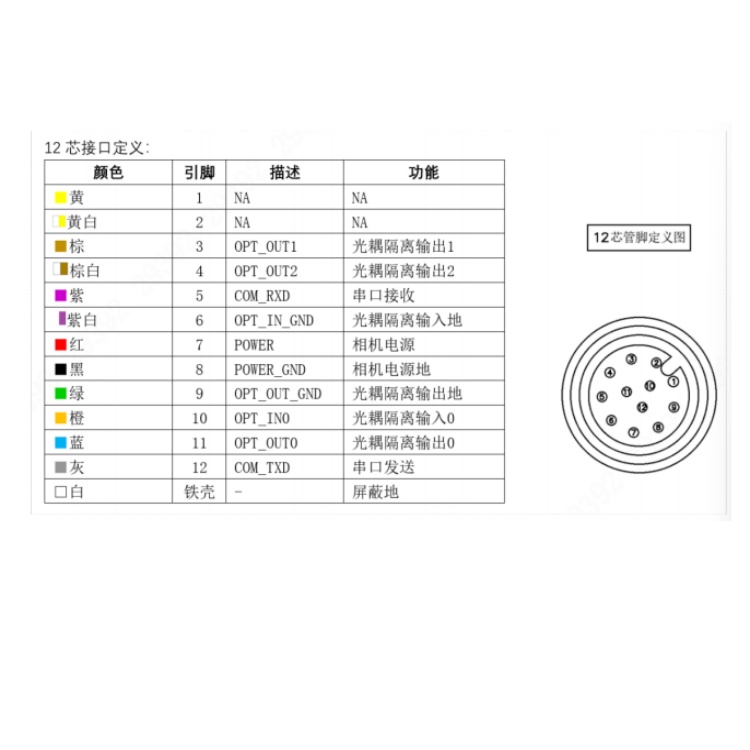 DH-MV-SI5600MG000 华睿科技X86系列600万像素1/1.8英寸CMOS卷帘快门30fps内置MVviewer工业相机客户端千兆工业以太网接口黑白智能相机 接口定义: