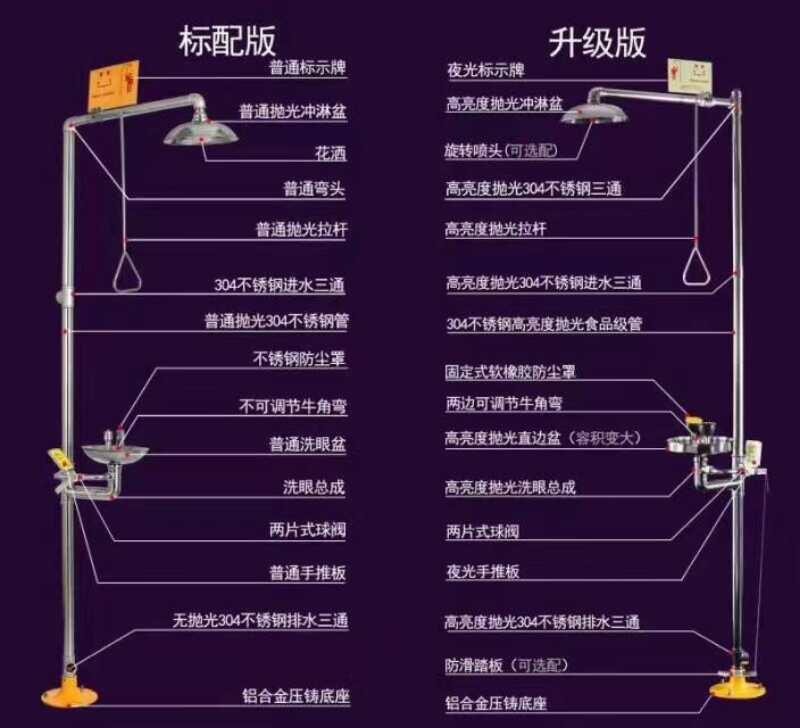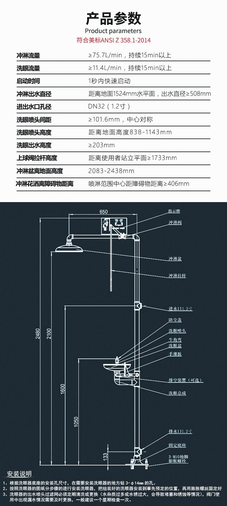 复合式快速冲淋洗眼器(带有ABS涂层)用于事故抢险,迅速清洗附着在人体上的有害物质,通过使用大量的水快速喷淋,冲洗,达到应急处理,从而减轻受伤害程度,也是一种经济可行的洗消方法。在使用本产品之前,使用者应阅读说明书。