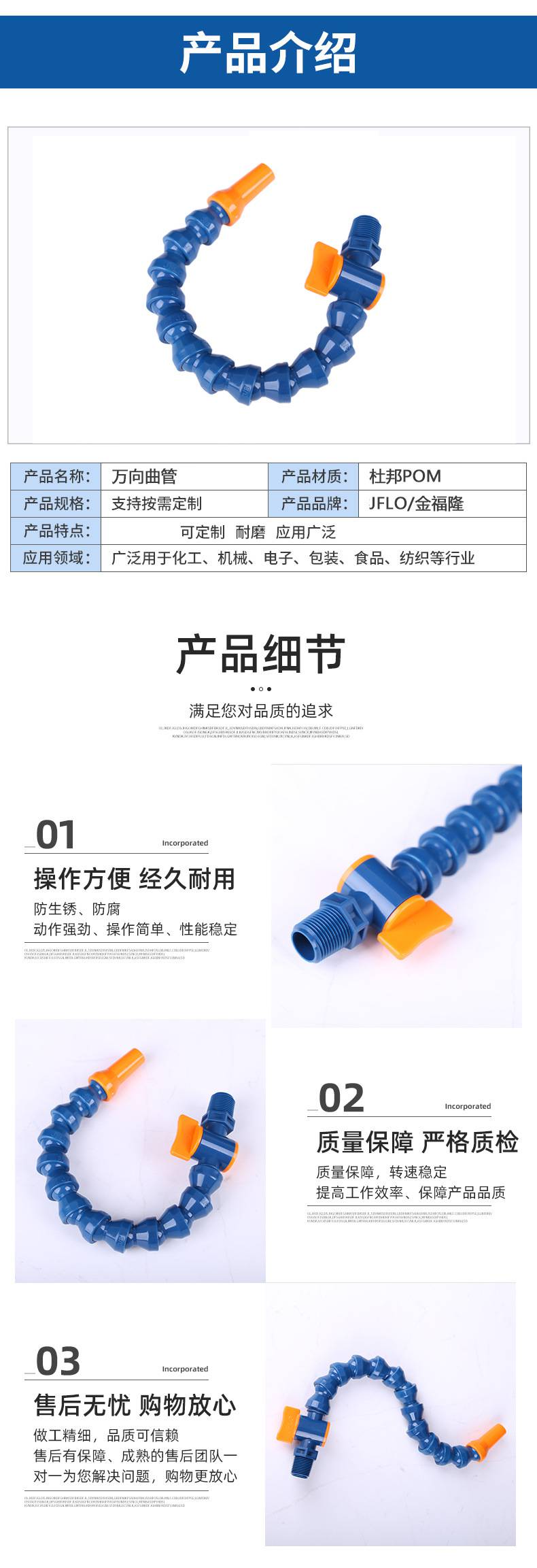 840720-17工程塑料万象曲管 3/4喷嘴 竹节冷却管 产品特性 | 韧性强 | ||