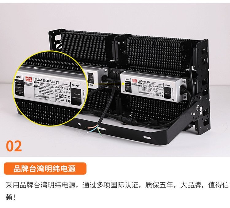 材质:鳍片式散热,飞利浦光源 明纬电源