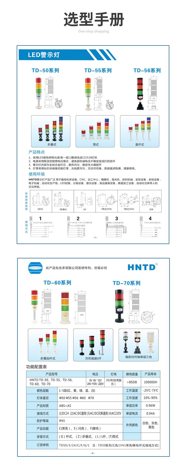 TD50/3/24/C/F/1 HNTD机床信号灯蜂鸣器LED警示灯 产品特性 | 可蜂鸣 | ||