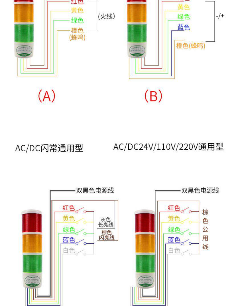 HNTD55L杆多层三色塔灯3528灯珠常亮蜂鸣85bd