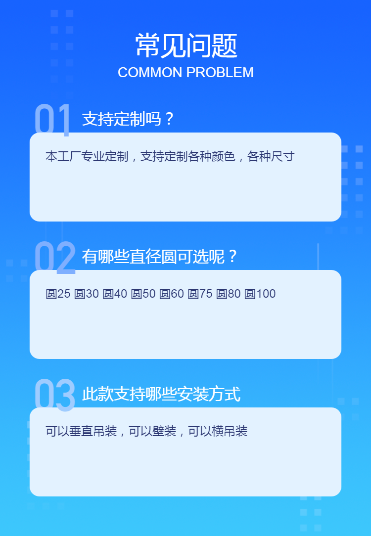 尺寸长度 | 0.3米 0.5米 0.6米 1米 1.2米 1.5米 3米 |