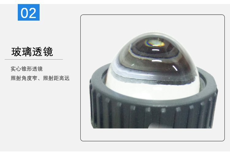 2、实心锥形透镜,照射角度窄、照射距离远