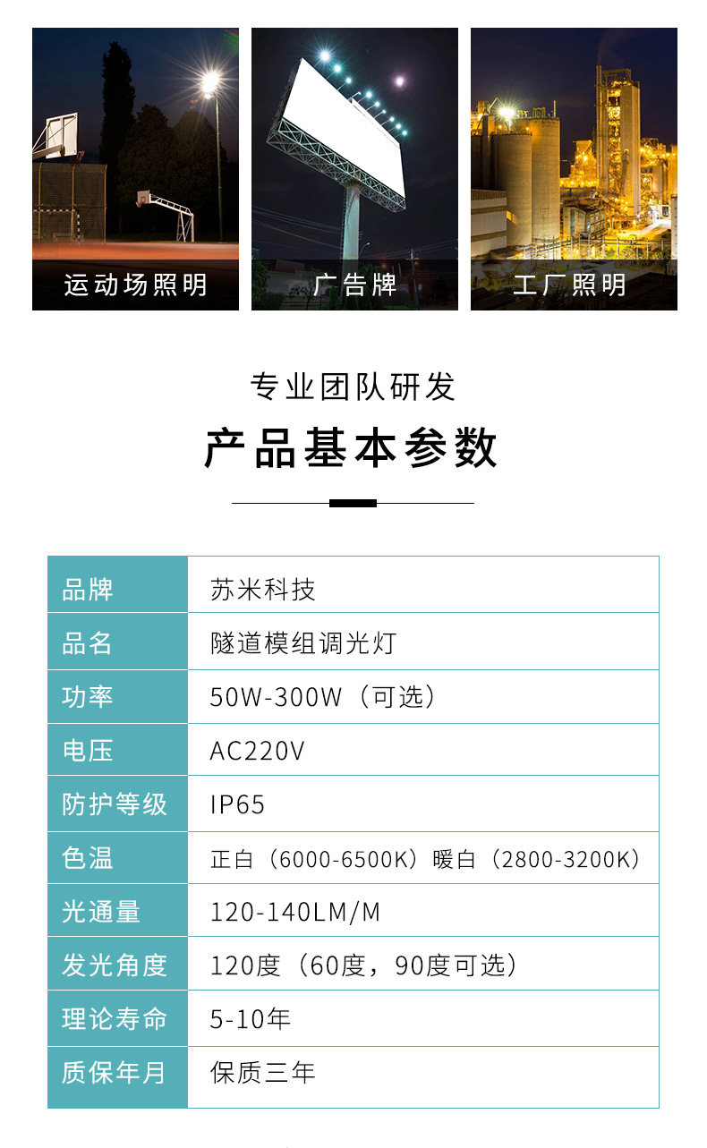苏米科技LED调光调色温隧道灯智能led模组回来调光控制30W-300W