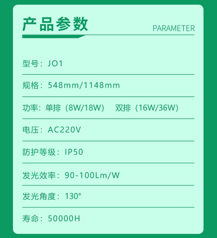 LED泪珠灯办公照明灯 8/16/18/36W 1.2米 洁净灯具 品牌 | 欧恩 | ||