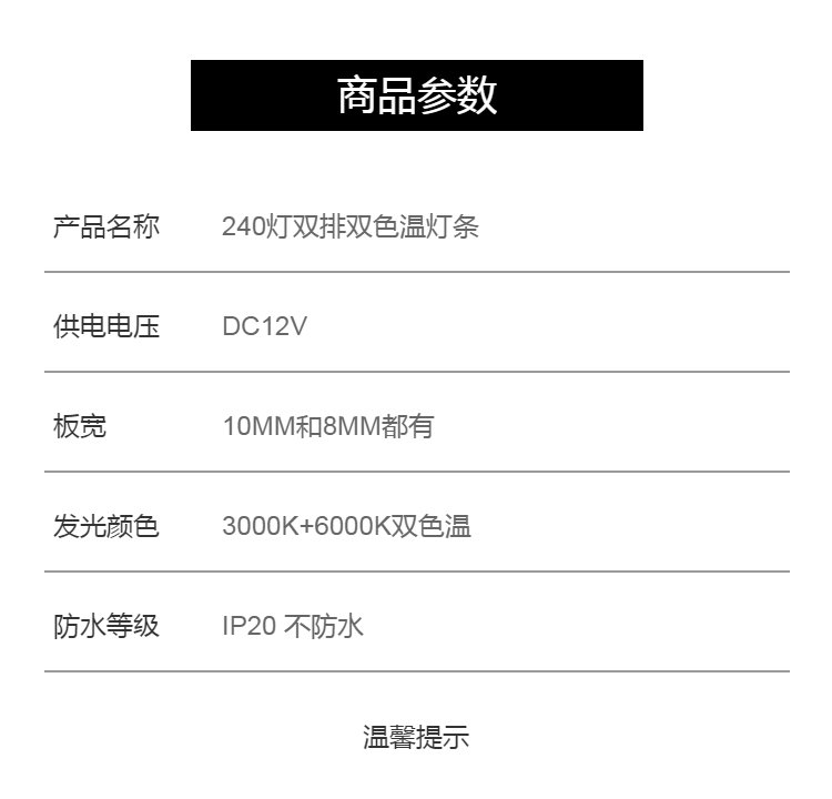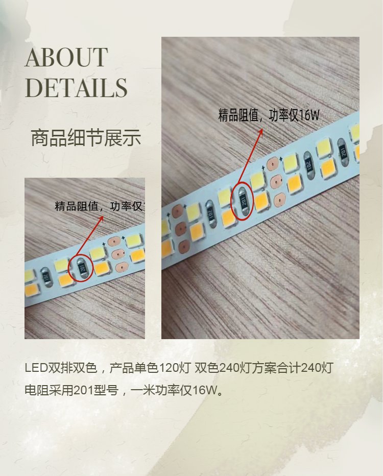 防水灯带2835双色温灯带240灯\/米双排高亮12Vled灯条