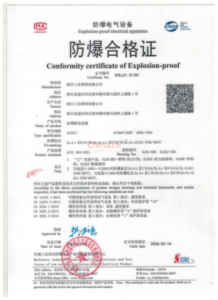 浙江三乐照明有限公司创始于2006年,? 是 研发、生产、销售为一体的公司,公司坐落 位于“中国电器之都”、“中 爆电器生产基地”浙江乐清市柳市镇, 从事煤矿、石油、化工、船舶、铁路、电力等特种照明。防爆电器、固定式防爆照明、固定式 照明、移动式防爆照明、移动式 照明,防爆配件系列产品的研发、制造、销售、和服务的高科技企业。