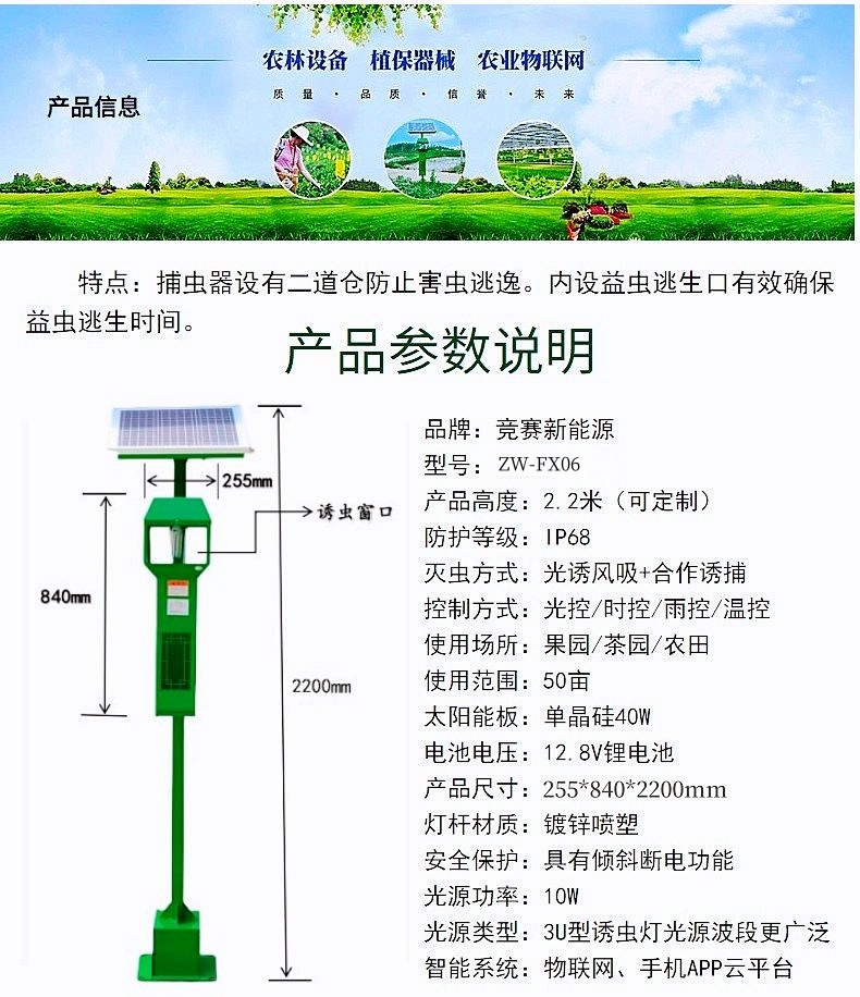 户外养殖杀虫灯太阳能灭蚊捕虫灯FX06节约了能量资源