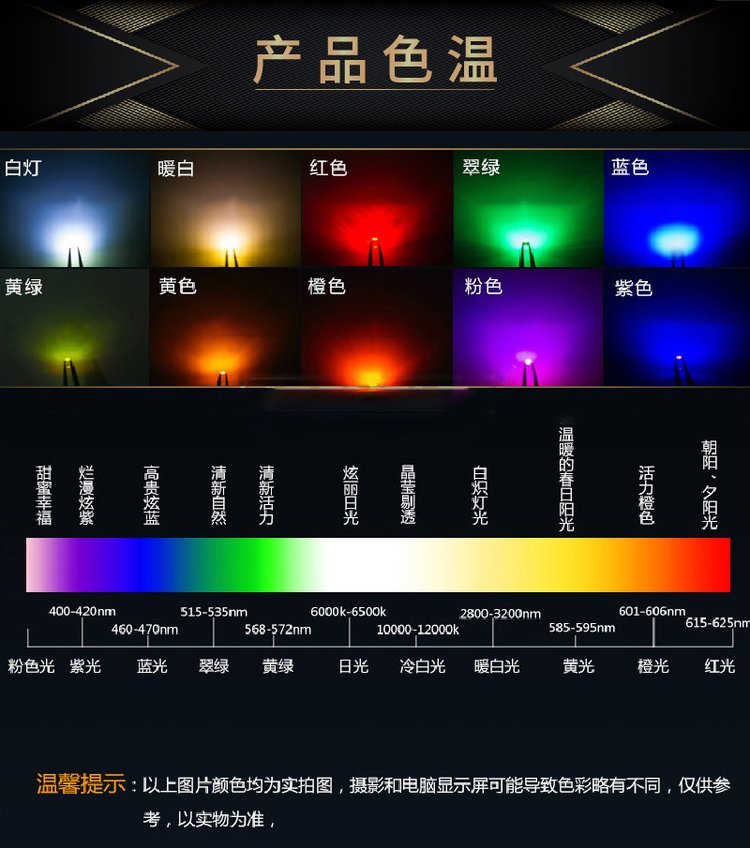 正向电压 | IR:1.6-1.8 W:3.0-3.4V | ||