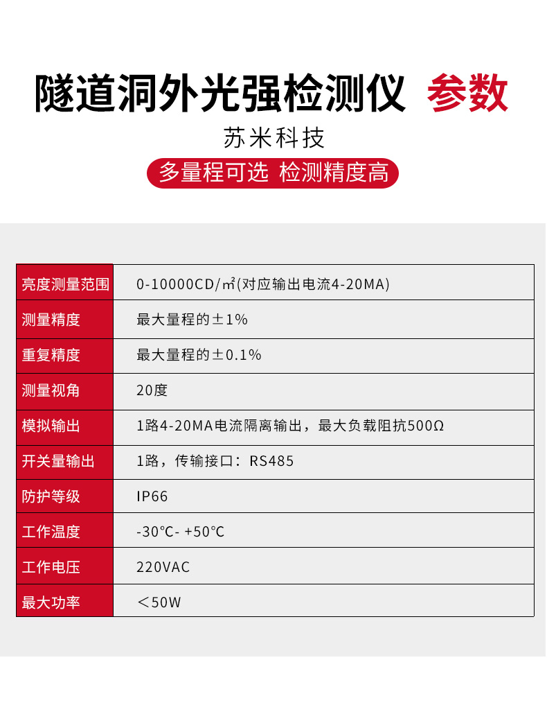 用途 | 检测隧道洞口光强度数值 | ||