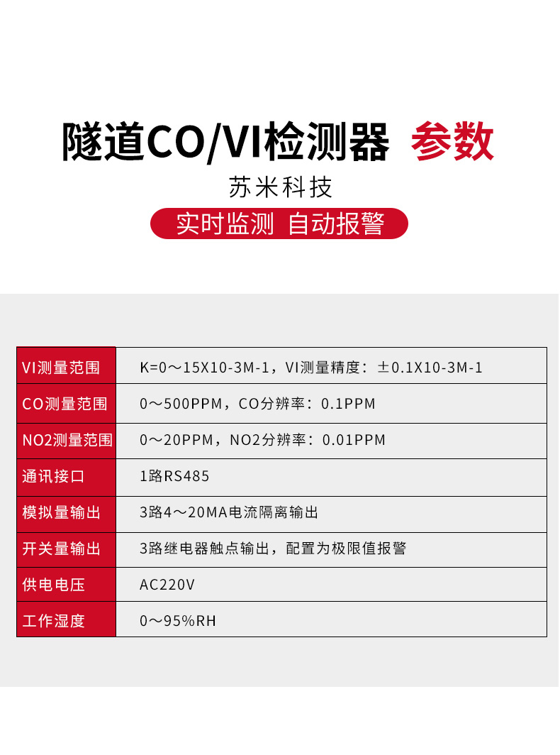 用途 | 监测隧道内一氧化碳与能见度数值 | ||