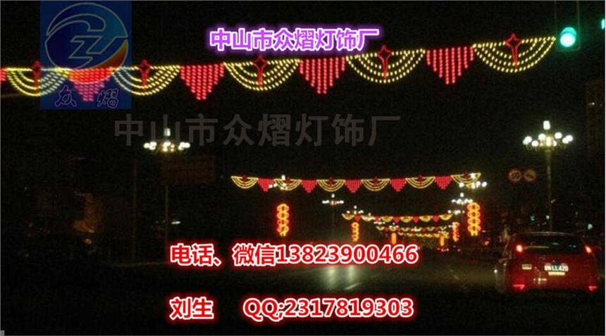 3、LED中国结灯从结构上分立式LED中国结灯和自由挂式LED中国结灯两种,LED中国结灯灯通过特殊处理组成的LED中国结产品,适用于贵宾光临、节日喜庆时刻,添加于城市主要干道的路灯灯杆上,既不需要增加路灯设施,又可以永久使用,可为整个城市增添最具中国特色的节日喜庆气氛, 使用LED中国结灯装饰道路工期短安装方便,可具永久性。直挂式型就是采用箍圈方式安装方法把LED中国结灯直接添加在路灯灯杆上的专用产品。使用这产品装饰道路免去基础及灯杆等工程。在容量方面条件允许的情况下使用,具有省时省资金的优势,立式LED中国结可直接安装在景区广场、商厦广场、亭园、门口、商业街、步行街、住宅小区、绿地、草坪、园林景观、旅游景点、景观道路装饰照明等!