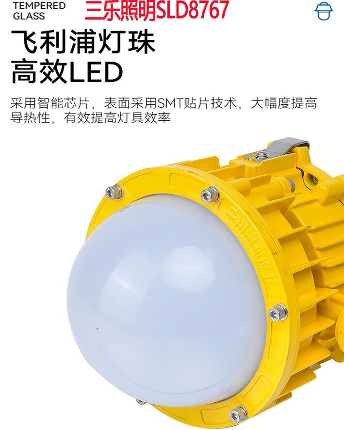 1、选用IIC等级防爆型式、IP66防护等级、BPC8767防爆渠道灯可在各种易燃易爆及恶劣场所安全运用;