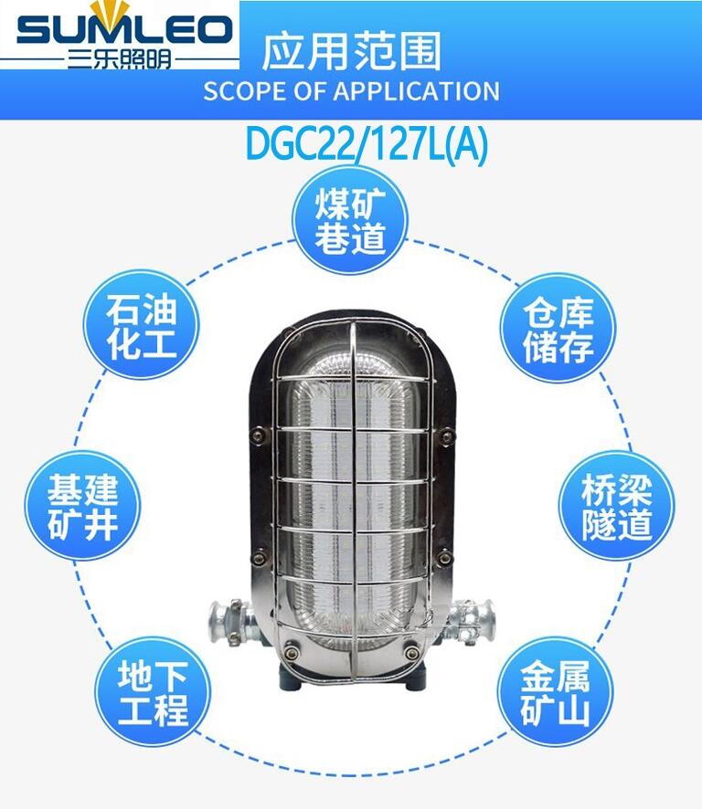 表 1. 矿用隔爆型 LED 支架灯基本参数DGC22/127L(A) DGC22/127L(A)矿用隔爆型LED支架灯 矿用支架灯