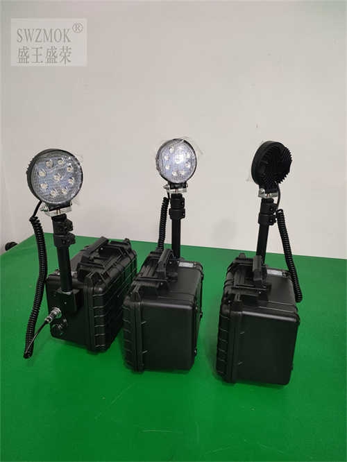 便携式照明箱体采用度塑料制作,并有良好的密封性能,灯头与灯杆使用铝合金,使耐磨.防水.防尘.防静电.抗冲击.抗腐蚀。