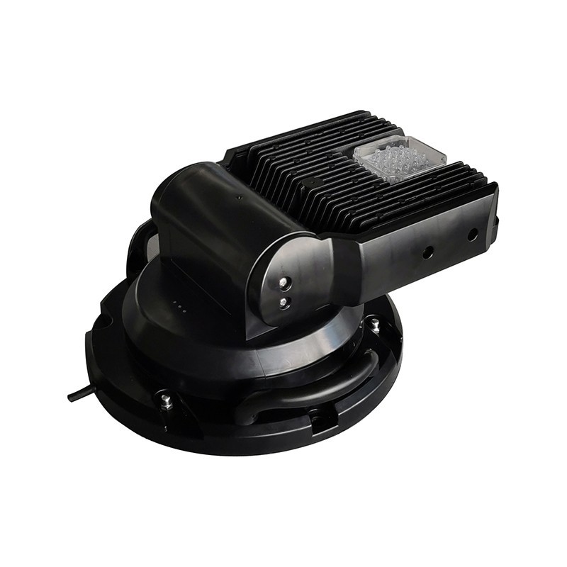 4. 灯具底盘装有强力磁铁,方便将灯具吸附在汽车、船舶上移动照明或长期螺装于车、船顶作搜索照明使用;独特的折叠式结构,使灯具能在车辆高速行驶时90度卧倒灯头,有效减少风阻。