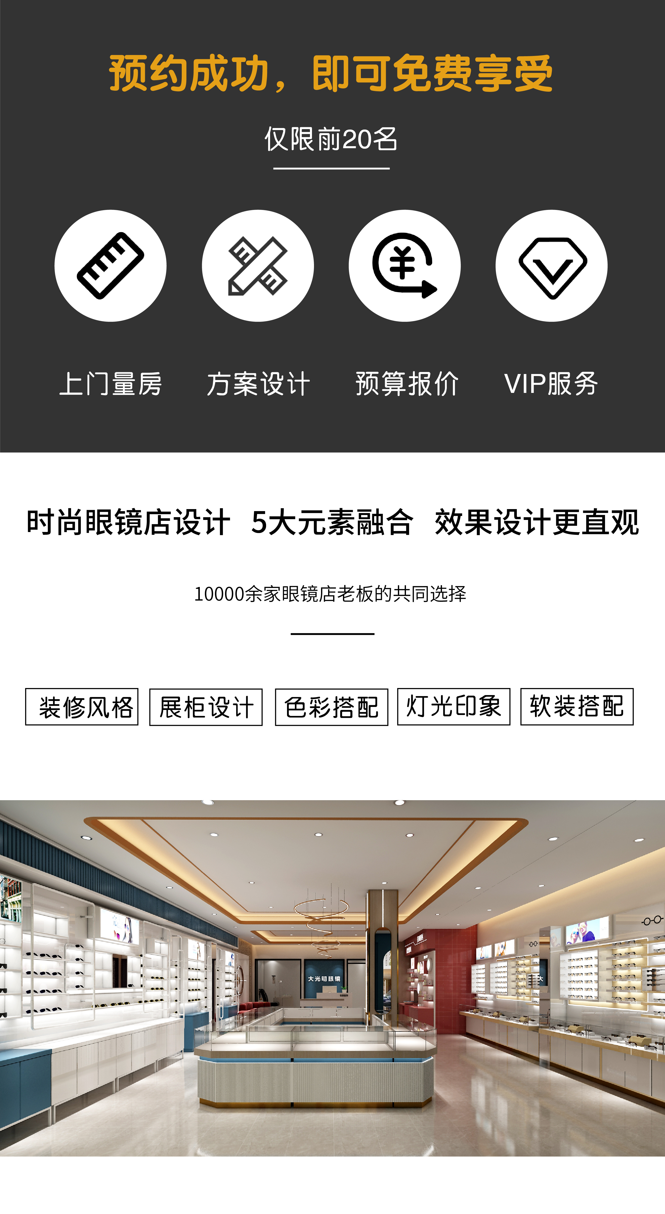 • 规格:基础装修 展柜定制,一站式眼镜店装修服务