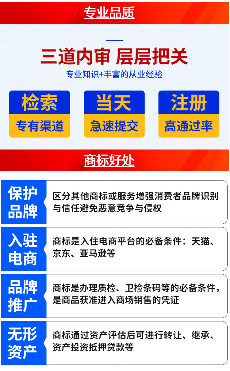 更多服务 | 商标注册转让 商标续展 商标驳回复审 异议/答辩 宽展 变更 | ||