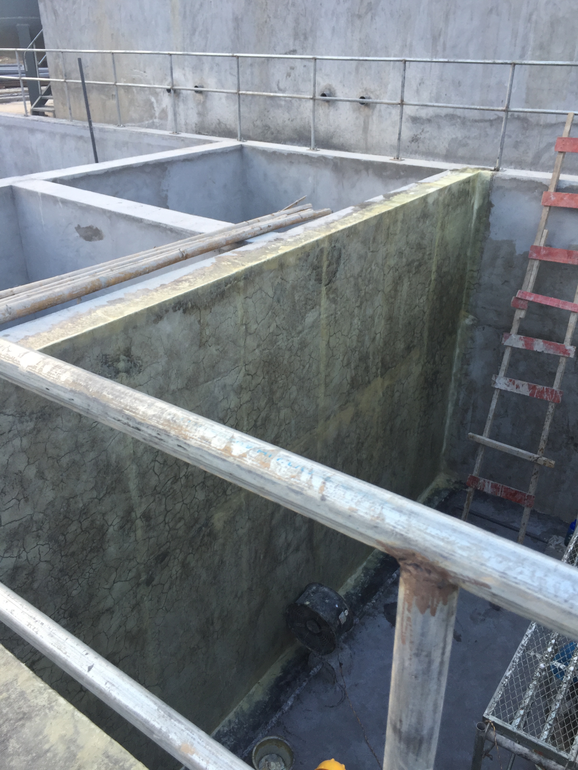 用于储存水,酸碱液体,废水的混凝土水池如:消防水池,中水池,酸碱池,污水池,废水池,氧化池,调节池,沉淀池,隔油池,游泳池等由于水及酸碱液体长期浸泡,腐蚀,又有一定水压,一般防腐防水材料难以满足防腐防水要求。广东穗兴世纪建筑工程有限公司结合实际情况,凭借雄厚的技术实力及多年的施工经验,于1989年率先研发推广混凝土综合水池专用防腐防水做法——环氧树脂防腐防水内衬及901特种树脂防腐防水内衬,并在华南,华中,华北等各大中城市的高层建筑生活水池,消防水池,蓄水池及化工,医药,电力,机械,电源,电镀,电子,铝材,陶瓷,冶金等行业内广泛使用.