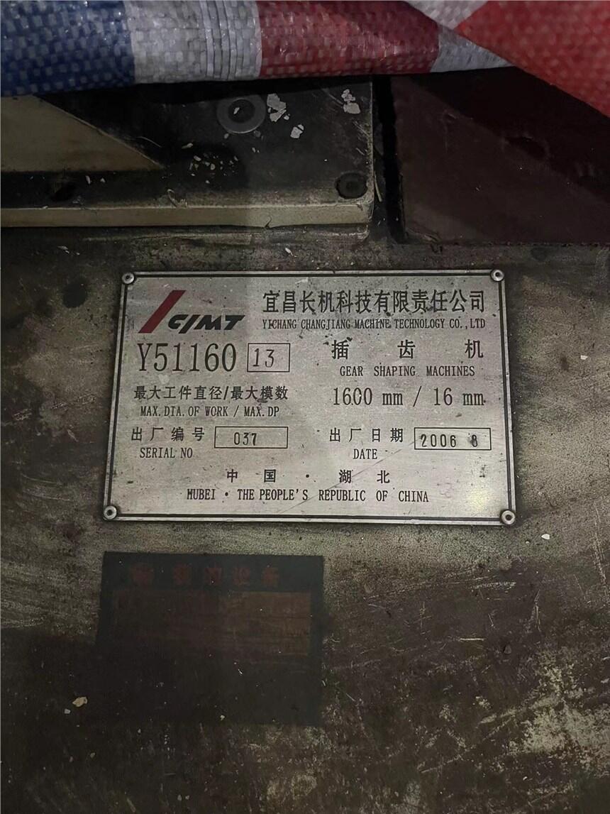 宜昌长机科技1.6米插齿机型号Y51160工件直径1600mm模数16mm年代2006年安装少用