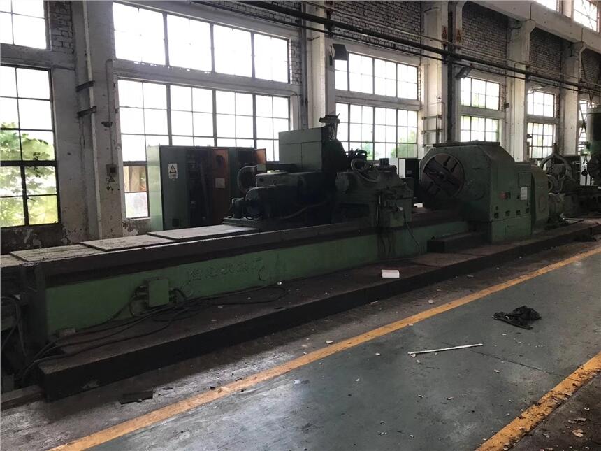 险峰5米轧辊磨床型号M84100B,加工规格1000x5000mm,险峰机床厂1993年产,托架、砂轮平衡杠等附件,安装在位