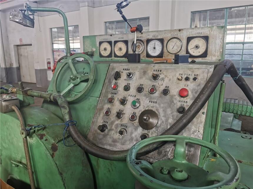 险峰5米轧辊磨床型号M84100B,加工规格1000x5000mm,险峰机床厂1993年产,托架、砂轮平衡杠等附件,安装在位