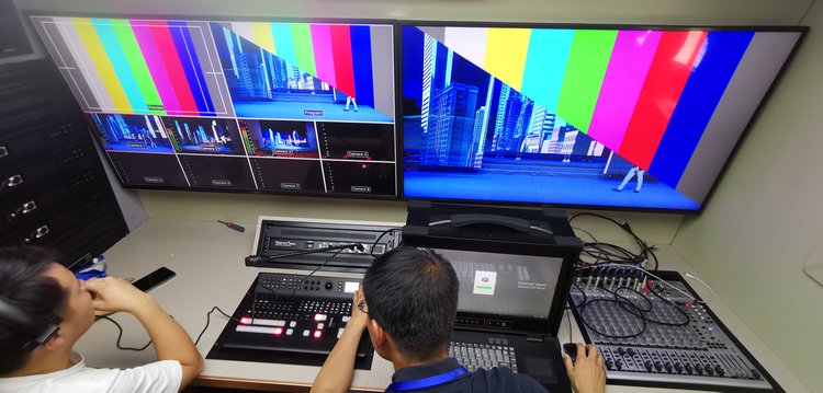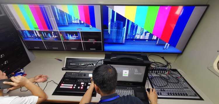 国六依维柯,整车长5670,整车装备三组标准机柜,可满足6讯道设备使用,配备顶置空调,UPS,电视墙可安装2组50寸大屏,满足现场直播和实时传输需求。