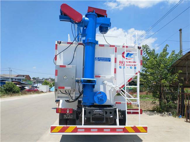 散装饲料车卸料快,节省人力.物力.以防饲料二次污染,的养殖企业的利润,省钱就是电动散装饲料车配置由三根蛟龙:分别,水平蛟龙.垂直蛟龙.180度摇摆蛟龙,高度可达到7.5米-8.6米。