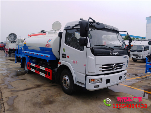 洒水车后洒(一般在小区,厂区,煤场,这种窄点的路况可以用后洒降尘,喷出来的水状为扇形)