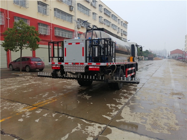 2.标准型: 取力器→液压泵→沥青泵液压马达→沥青泵→喷洒(后工作平台按钮操作,驾驶室内带一键启动)外形上和智能型是一样的,喷洒沥青种类:乳化沥青、改性乳化沥青、热沥青、SBS改性沥青等。