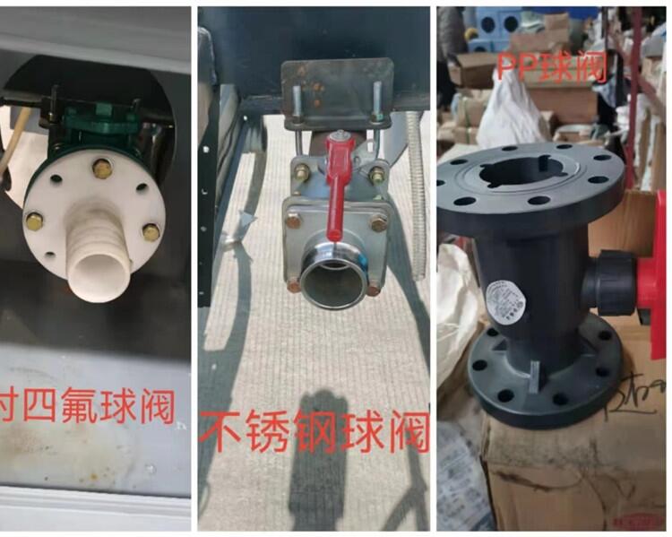 ,在罐体后尾部大梁下左右自流合一个DN80不锈钢304球阀带出口,出口带塑料保护箱,罐体