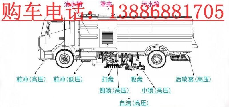 12. 车厢尾部带可调节的雾状喷水杆,在节约水的同时消除二次污染及美化路面的效果。
