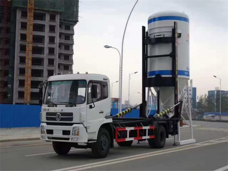 背罐车是对干混砂浆散装移动筒仓从干混砂浆生产厂运送到工地或工地之间进行搬运的专用车辆,其大大节省了装卸的人力和时间,是干混砂浆物料存储、转运物流系统中的主要设备之一。