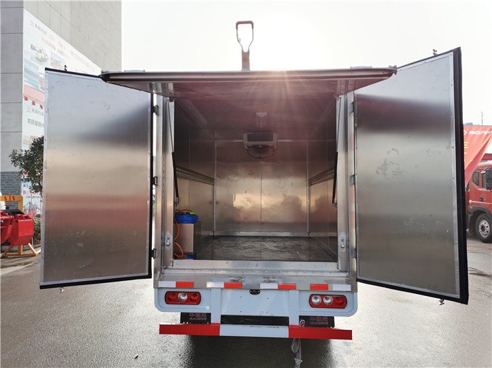 江铃顺达国六医疗废物转运车,整车型号:AAA5041XYYJ6,单排驾驶室,可前翻,遥控中控锁,江西五十铃发动机,85kw,115马力,7.00钢丝胎,油刹,五档箱,带排气制动,原厂空调,带刹车间隙自动调整,原厂ABS,前桥2.5吨,后桥4吨。整车尺寸:5995×1950×2860(mm),厢体尺寸:3950×1850×1750(mm)箱体采用外玻璃钢内不锈钢材质制成,5cm保温板,箱体内无死角,加装喷雾消毒,紫外线灭菌灯,尾部为双层密封门,防渗漏,污水收集箱,加装-5度制冷机组。